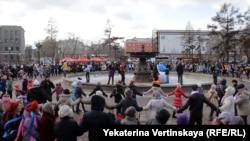 Участников двух маршей с одной повесткой – "За Новороссию!" – День народного единства объединить не смог, но объединил сотни людей разных национальностей и вероисповеданий, проживающих в Иркутске. На традиционный большой народный хоровод, который состоялся в сквере Кирова, собралось больше всего иркутян и гостей города. В этом мероприятии участвовали почти 400 человек. Все они, взявшись за руки, организовали три круга и под русскую народную мелодию выполняли простые танцевальные движения. Всем процессом руководили фитнес-инструкторы, сообщает корреспондент Радио Свобода Екатерина Вертинская.