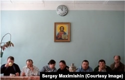 Мария Луизе Схилт-Тиссен: Это психоневрологический диспансер, они просто пьют чай, но возникает непременная ассоциация с тайной вечерей и апостолами. Я не хочу сказать, что у других фотографов не показана “русская душа”, но Максимишин воспринимается как еще более русский фотограф, чем все русские фотографы, которых мы здесь выставляем.