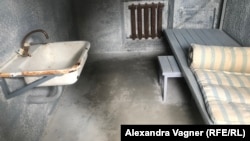 Помещение размером 2,5 на 3 метра, железная койка пристегнута к стене, зарешеченная форточка вместо окна, бетонный пол, ржавый умывальник и напольный унитаз. Так выглядит камера в штрафном изоляторе, куда несколько раз помещали российского оппозиционного политика Алексея Навального. Копия этой тюремной камеры 18 мая установлена в Праге на Староместской площади.