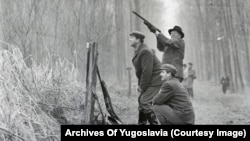 Тито (справа) наблюдает за падением фазана, которого он только что подстрелил из дробовика во время охоты в Караджорджеве в 1960 году.