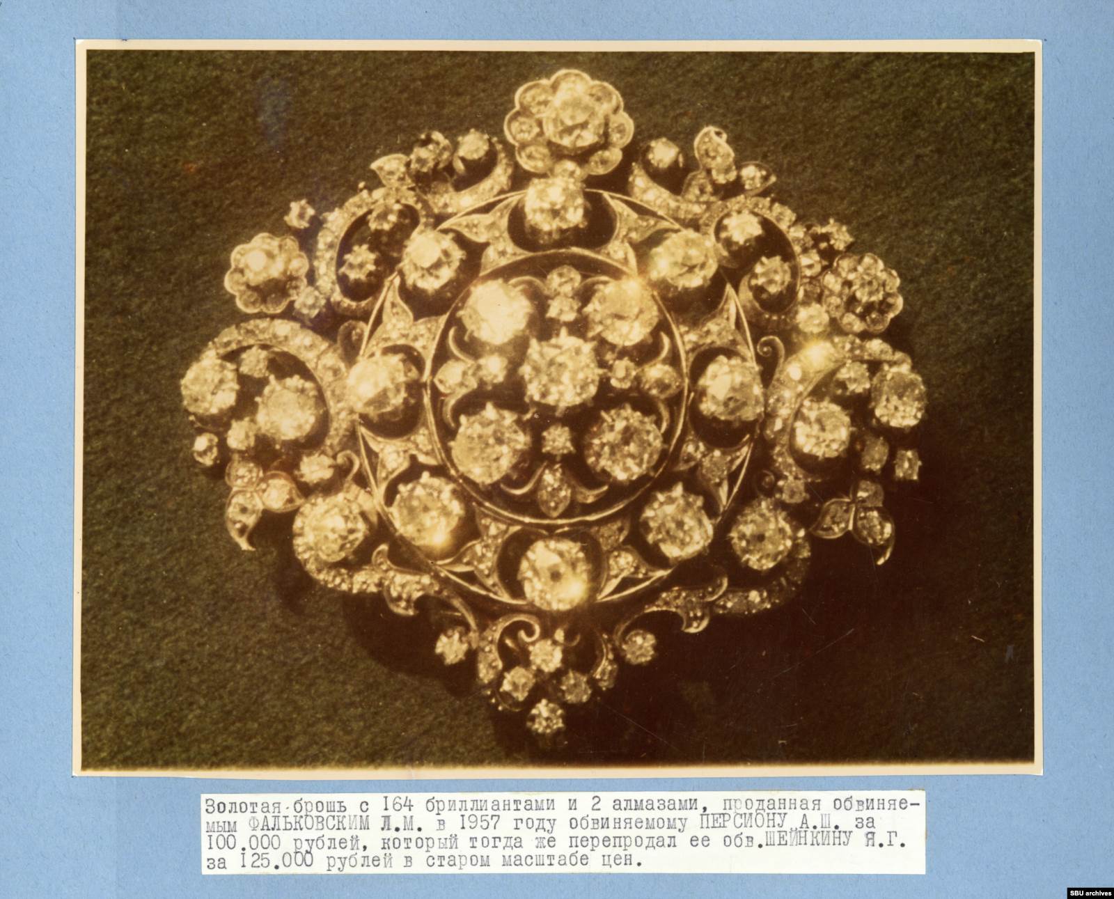 Самым дорогим приобретением стала золотая брошь с двумя алмазами и 164 бриллиантами. За нее кладовщик отдал 125 тысяч дореформенных рублей – это средняя советская зарплата за 13 лет.