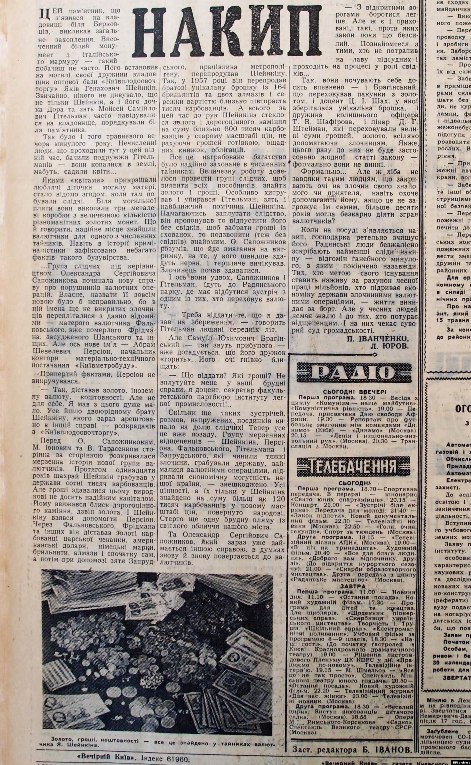 Вскоре после приговора газета "Вечерний Киев" посвятила этому делу статью "Накипь":